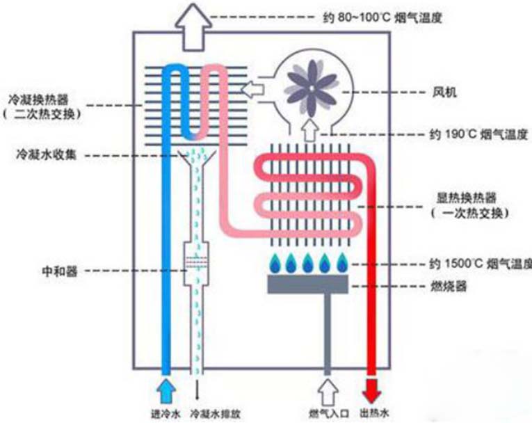 燃氣熱水器首先是在進氣閥以及進水閥都己打開,電源接通的情況下,在打開熱水閥,這時水進入熱水器再經過水量傳感器流向熱交換器中的加熱水管。位于燃燒器上部的火焰檢測棒檢出火焰信號,通過控制電路將燃燒指示燈點亮,并使燃燒保持下去。火焰的高溫將流過水箱中加熱水管的水加熱成熟水,隨后從熱水閥中流出。面板上的溫度調節旋紐可以自行設定所需熱水溫度。