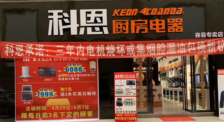 恭賀陳總科恩廚房電器廣西容縣專賣店隆重開業(yè),祝陳總生意興隆,財源茂盛。我們共創(chuàng)、共贏、共享!
