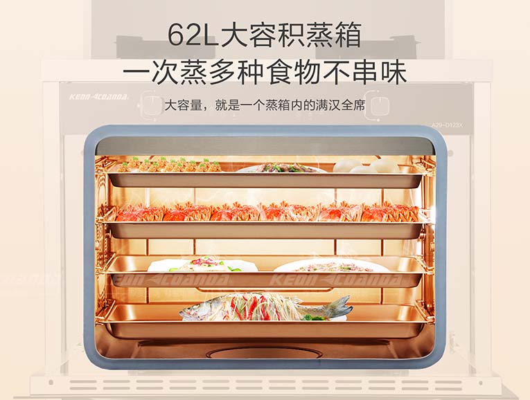 更值得一提的是,科恩智能變頻大吸力X系列集成灶除了擁有較強(qiáng)的油煙吸力外,還擁有5.0KW大火力,猛火直噴爆炒,熱量集中不分散,59銅火蓋設(shè)計(jì),安全穩(wěn)定使用壽命更長(zhǎng)。與此同時(shí),下方還搭載了62L黃金容量蒸烤箱,一鍵智能預(yù)約,4D立體直噴蒸烤模式,受熱更均勻,頂部不滴水,智能恒溫蒸烤,多種食物蒸烤不串味,美食色澤亮麗,營(yíng)養(yǎng)不流失,并配備全面高溫蒸消毒功能,讓用戶們的餐具使用更健康更安全!