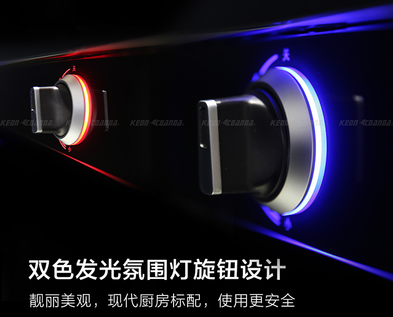 集成灶十大品牌科恩智能炫彩系列集成灶D620采用非凡設計,五合一全能配置,結合造就簡約流暢的現代風格,與整體櫥柜搭配彰顯氣質,體現尊貴華麗風范。機頭采用藍色氛圍燈,雙色發光氛圍燈灶具旋鈕設計,整機不僅顯得靚麗美觀,為廚房增添光彩,灶具旋鈕雙色設計更能保證集成灶的使用安全。