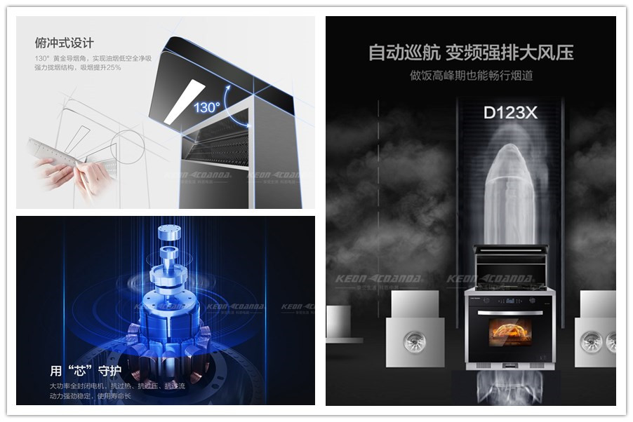 從吸煙方面來說,廚房無油煙幾乎是所有廚房應該做到的基本功,集成灶十大品牌、廚電行業十大品牌科恩集成灶擁有21m3/min爆吸技術,720Pa大風壓,即使遇到爆炒短時間內油煙量劇增的情況,也能順利吸凈油煙,極大程度保證了廚房內空氣的補給循環。