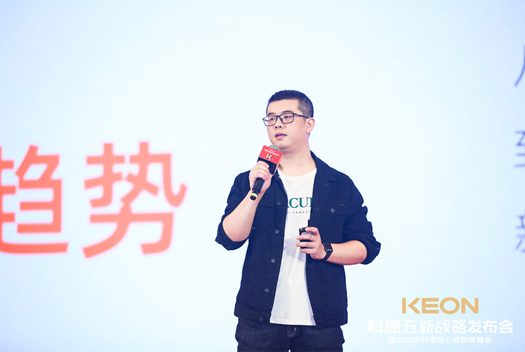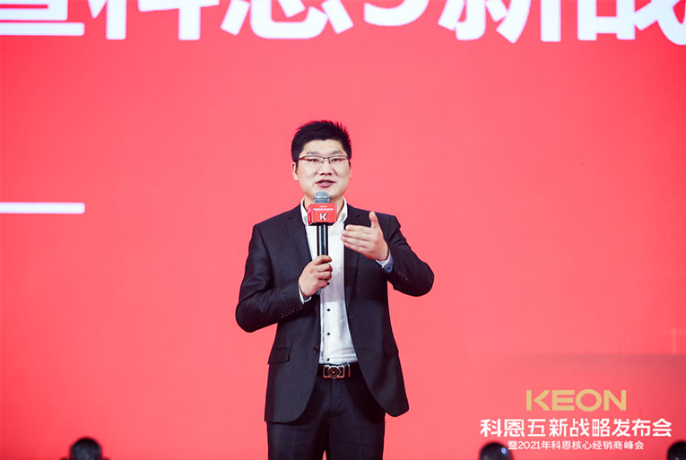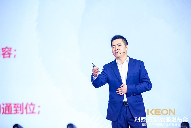 這一切成功的背后,除了有一支優(yōu)秀的鐵血團(tuán)隊,還有各地經(jīng)銷商家人的支持陪伴,更重要的是有一位領(lǐng)航人不斷地探索。科恩電器董事長俞鋒上臺致辭,宣布峰會正式開始,“打造新科恩、重塑新科恩,再創(chuàng)科恩黃金十年”這一堅定目標(biāo)和信念,伴隨洪亮的嗓音響徹全場。
