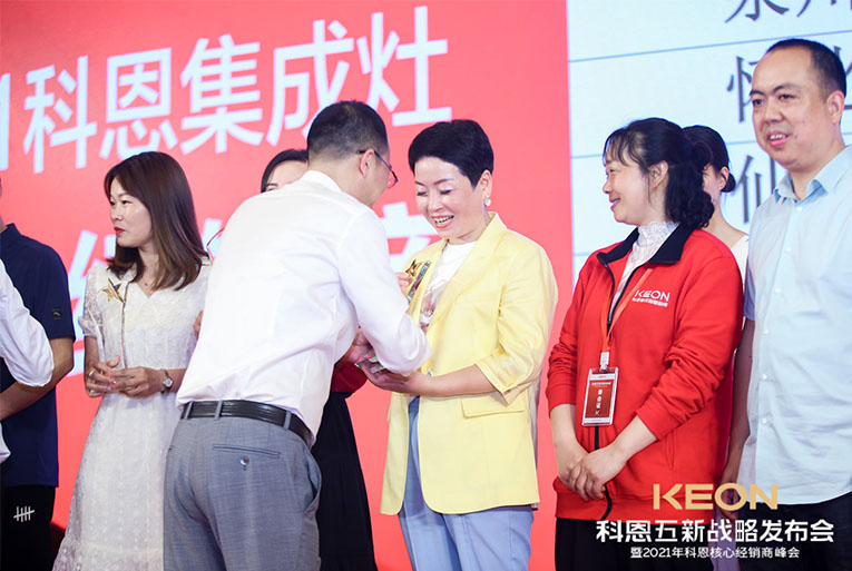 來自全國各地的獲獎經(jīng)銷商登臺,雙手接下榮譽(yù)獎?wù)拢@份榮譽(yù)代表著他們堅守著不變的信念,對科恩事業(yè)永遠(yuǎn)保持熱忱之心,行動和成績是他們給予的優(yōu)秀答卷。科恩電器發(fā)展至今,離不開全國所有經(jīng)銷商們的共同努力,同心同行、攜手再創(chuàng)下一個黃金十年!