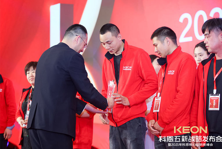 科恩電器一路披荊斬棘,成功實現(xiàn)了一輪又一輪銷量的突破,這一切的成果都離不開終端經(jīng)銷商的努力與付出。晚宴現(xiàn)場對科恩電器優(yōu)秀經(jīng)銷商進(jìn)行了表彰獎勵,頒發(fā)了2020年度科恩電器優(yōu)秀專賣店、2020年度科恩電器優(yōu)秀經(jīng)銷商、2020年度科恩電器杰出經(jīng)銷商、2020年度科恩電器卓越經(jīng)銷商、2020年度科恩電器功勛經(jīng)銷商等在內(nèi)的多項大獎,公司高管上臺授予榮譽(yù)。