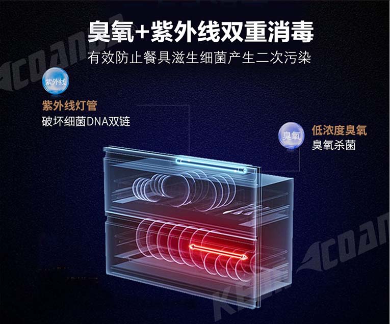 集成灶十大品牌、廚電行業(yè)十大品牌科恩D520煙灶消集成灶消毒柜上層采用臭氧+紫外線雙重消毒,下層采用紅外線高溫消毒,恒溫循環(huán)殺菌,有效殺滅大腸桿菌、幽門螺桿菌、乙肝等病毒細(xì)菌,有效防止了餐具滋生細(xì)菌產(chǎn)生的二次污染,呵護(hù)全家健康。