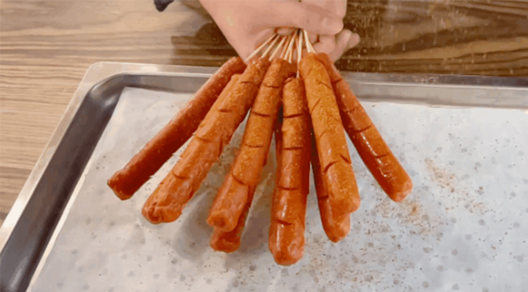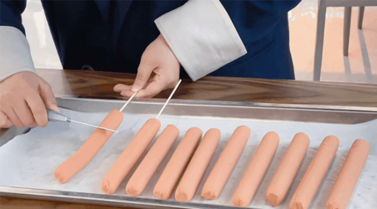 01香腸兩側搭上斜花刀