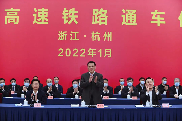 1月8日上午,浙江省委書(shū)記、省人大常委會(huì)主任袁家軍在省主會(huì)場(chǎng)出席儀式并宣布杭臺(tái)高速鐵路開(kāi)通。