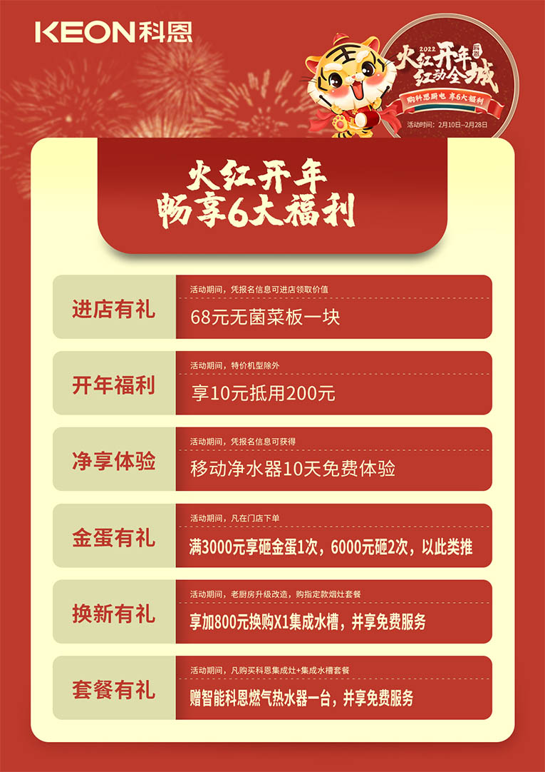 新年新氣象,新舊物品的更迭,不僅是告別過(guò)去的一年,更是蘊(yùn)藏對(duì)新一年的憧憬~新的一年,集成灶十大品牌、廚電行業(yè)十大品牌科恩集成灶“火紅開(kāi)年,紅動(dòng)全城”活動(dòng),加持您的新氣象,“灶”就虎虎生威的2022!