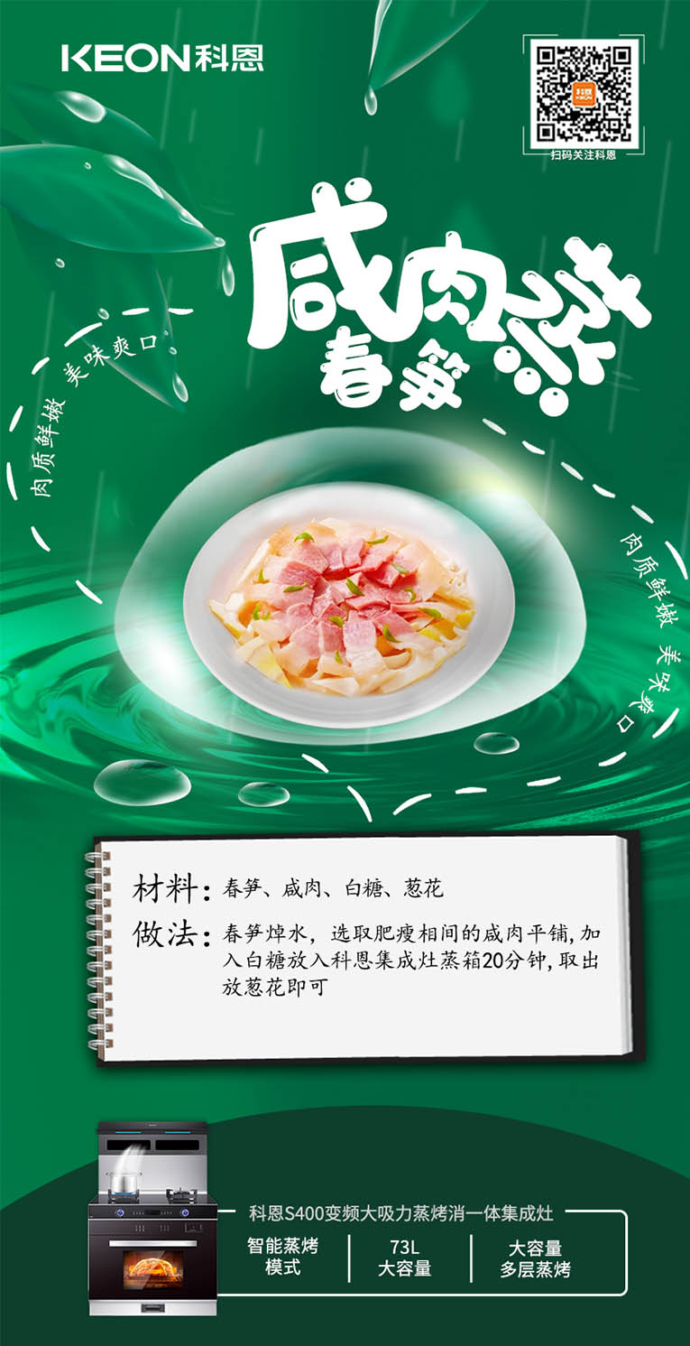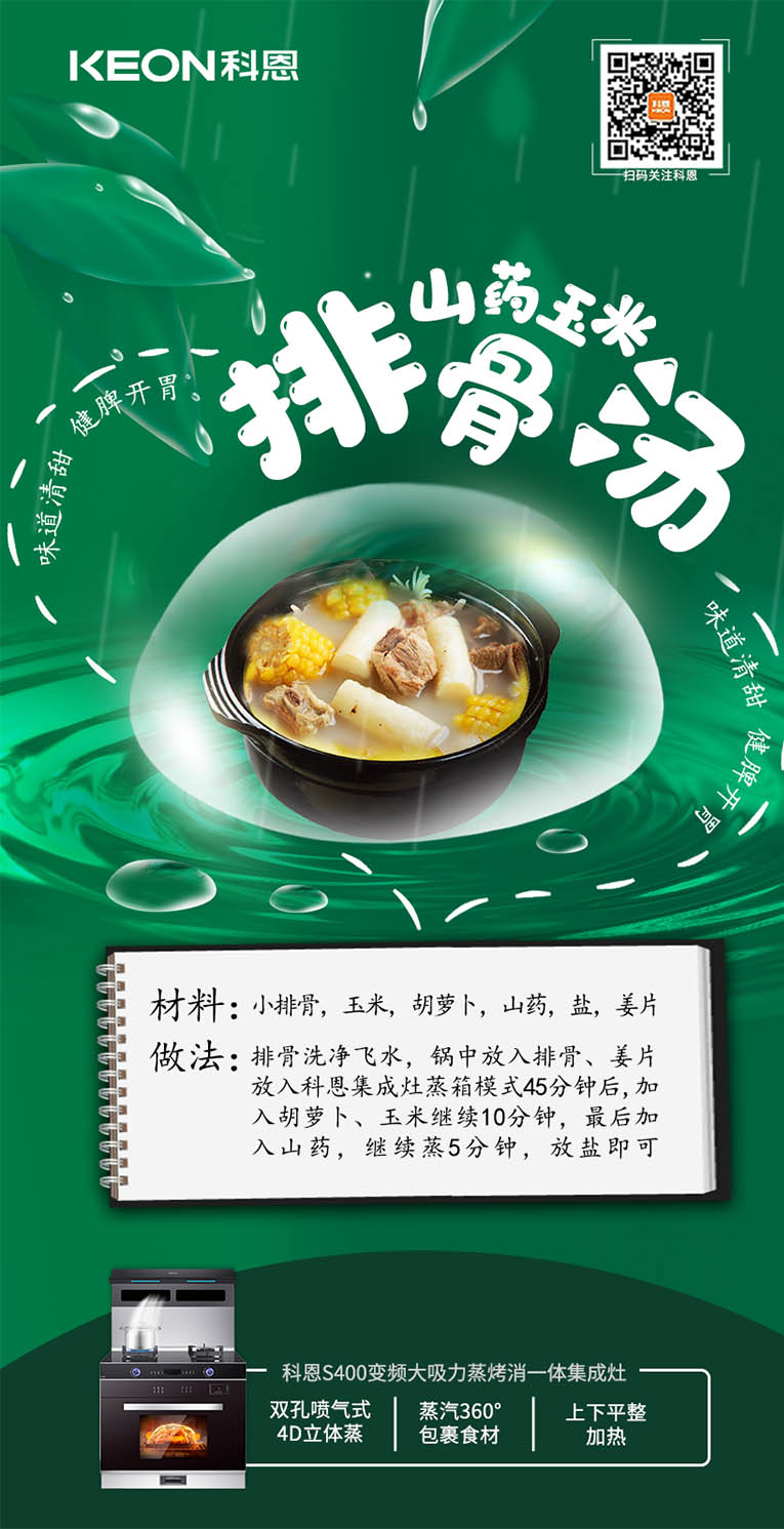 中醫(yī)認為肝主生發(fā),故春季肝氣旺盛,肝木易克脾土,養(yǎng)生不當容易損傷脾臟,從而導(dǎo)致脾胃功能的下降。雨水時節(jié)空氣濕潤,又不燥熱,正是養(yǎng)生的好時機,當然首先要調(diào)養(yǎng)脾胃。集成灶十大品牌、廚電行業(yè)十大品牌科恩集成灶多項全能,蒸煮、煲湯、煎炸、爆炒樣樣精通,輕松應(yīng)對您所需的烹飪方式,20m3/min大風量,720Pa大風壓,只留美味,不留油煙。