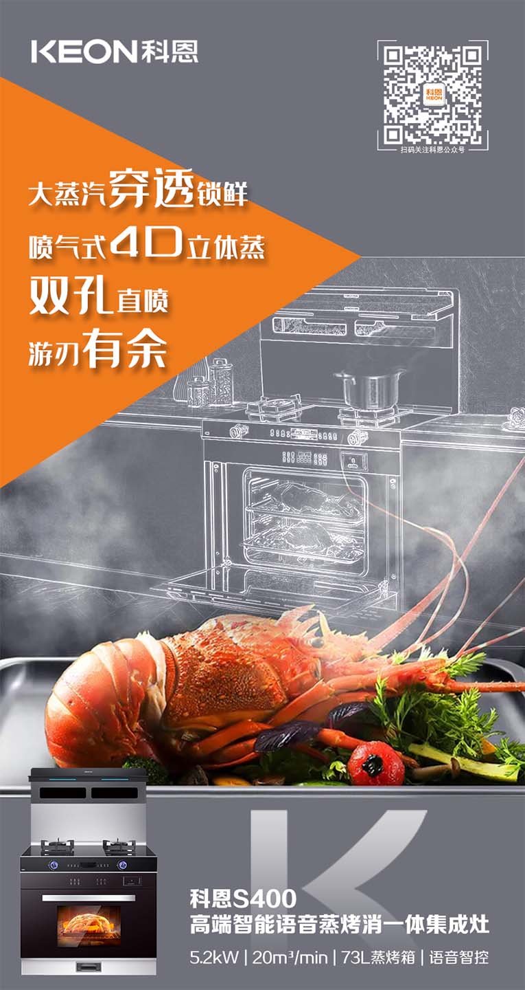 當(dāng)代年輕人的“懶”癥可謂是人盡皆知,因此烹飪美食時(shí),只求一次搞定!有效提升烹飪效率,集成灶十大品牌、廚電行業(yè)十大品牌科恩S400變頻大吸力蒸烤消一體集成灶上下平整加熱加右側(cè)雙孔蒸汽噴射,迅速升溫,美味加速,四面受熱均勻,營(yíng)養(yǎng)不流失。
