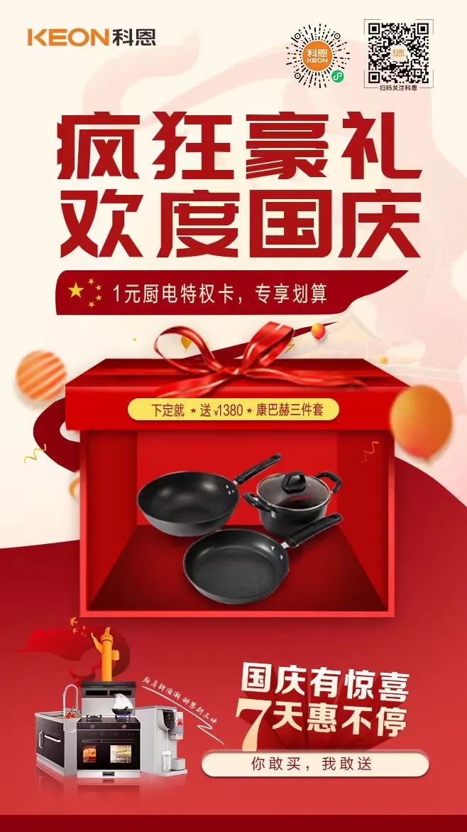 1元瘋搶,給力國慶,科恩家裝廚電節國慶專輯——國慶有驚喜,7天惠不停正火熱進行中,力度空前,更有豪華大禮包驚喜贈送,全民鉅惠,就在科恩家裝廚電節,更多鉅惠活動請詳詢科恩各大門店!