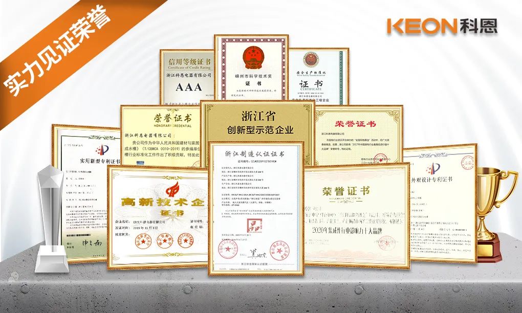 品質(zhì)彰顯,載譽前行!科恩電器始終以匠心鑄就品牌榮耀勛章,用品質(zhì)獲得了行業(yè)和消費者的普遍認可,擁有高新技術(shù)企業(yè)、專利示范企業(yè)、集成灶十大品牌、集成水槽十大品牌、行業(yè)國標起草單位、高效凈化環(huán)保之星、CNAS認可實驗室、浙江制造標準起草單位、集成灶團體標準起草單位、建材與家居專業(yè)標準《集成水槽》參編企業(yè)等榮譽。并擁有百余項專利技術(shù)認證,參與并起草多項標準,為行業(yè)的技術(shù)研發(fā)提供數(shù)據(jù)支撐,一個個的榮譽背后,見證著科恩贏得了眾多消費者的信賴與支持。