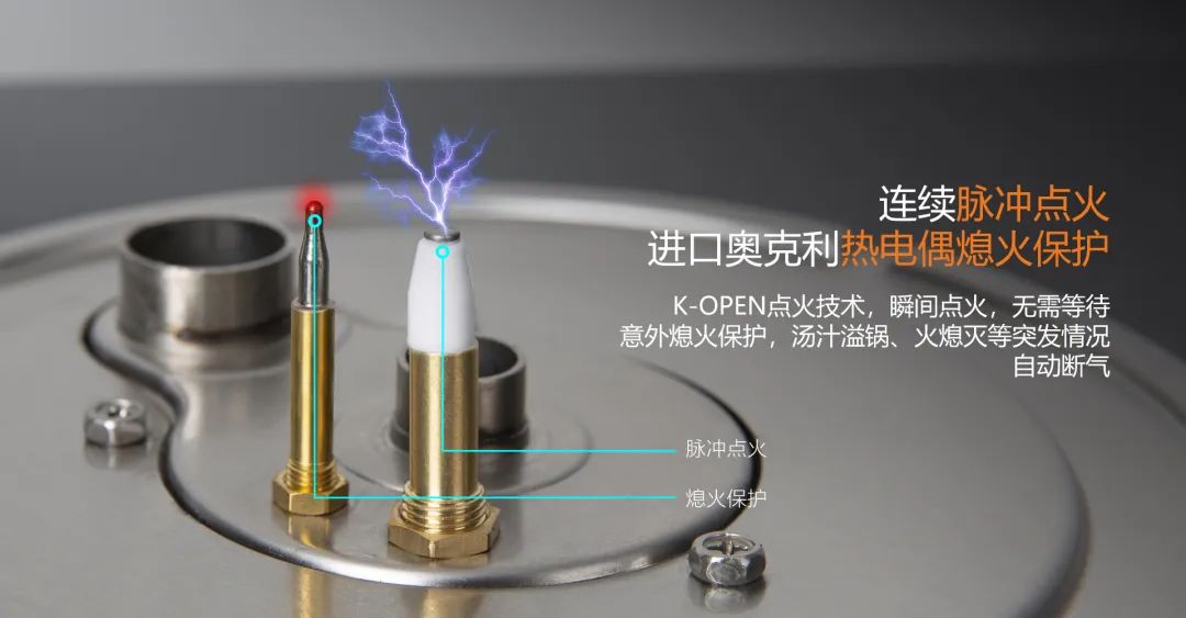 奧克利熄火針,意外熄火保護(hù),湯汁溢鍋、火熄滅等自動(dòng)斷氣,保障廚房安全。連續(xù)脈沖點(diǎn)火,瞬間點(diǎn)火,無(wú)需等待。