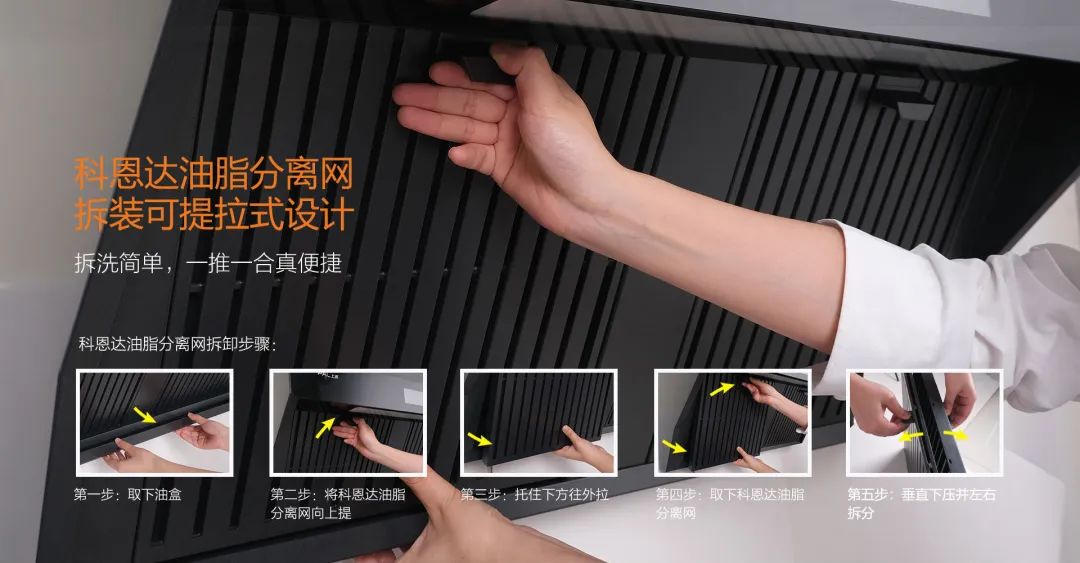 不是煙機的每一張網板可稱為科恩達油脂分離網,結構科學,油脂高分離,只吸煙不吸油!