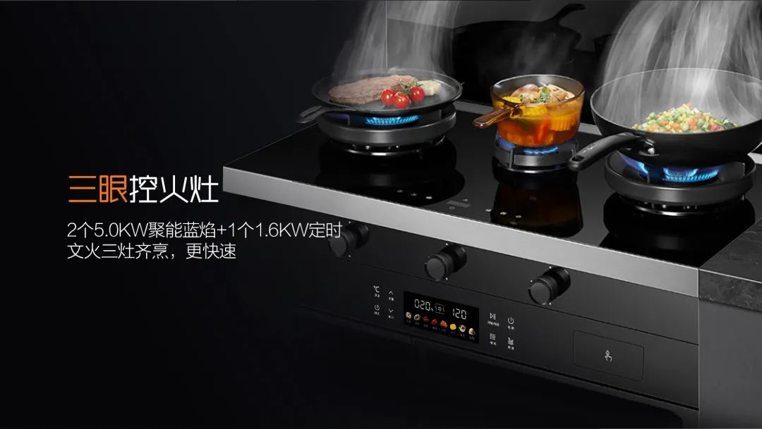 三灶同烹 美味加速A3系列特有的三灶同烹,實打實做到開一次火,搞定兩菜一湯,對于兩口之家也十分適用。