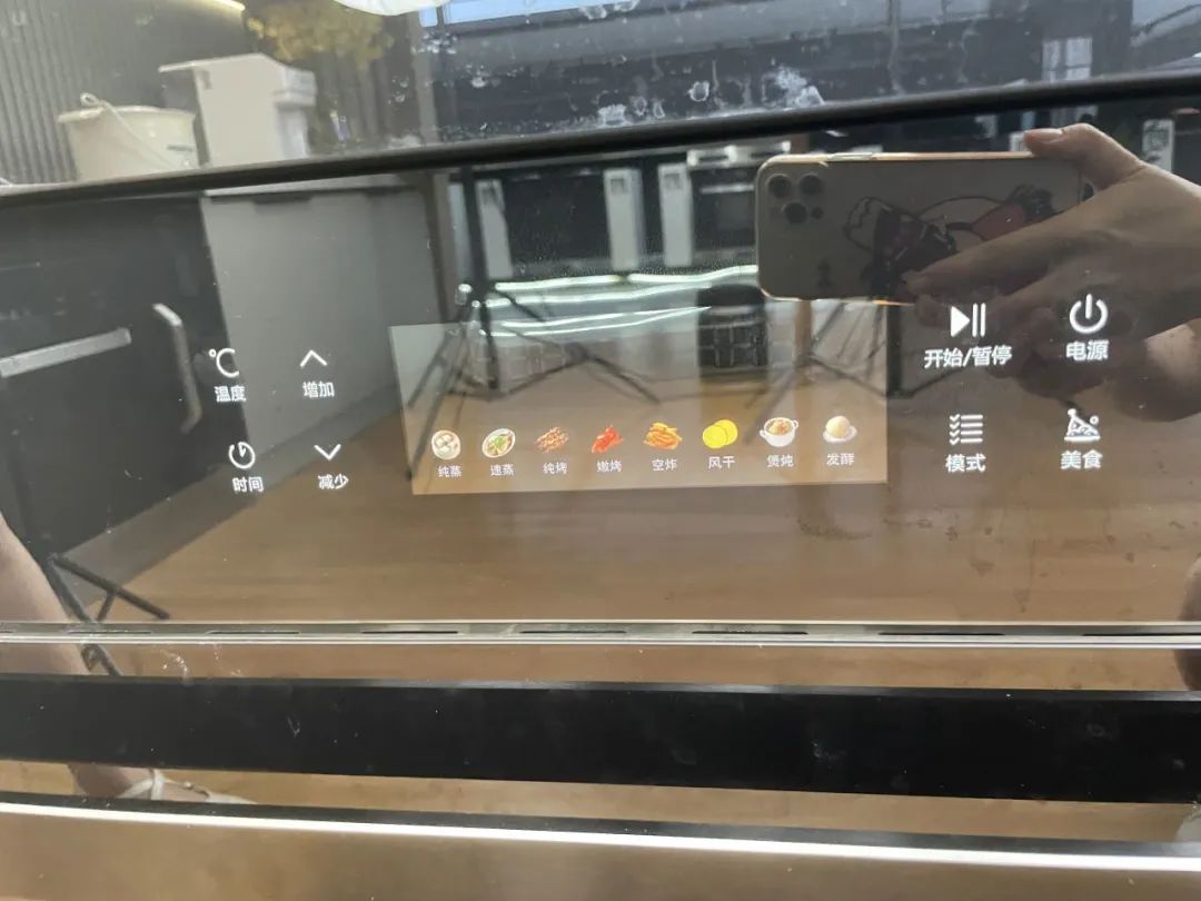 在蒸烤箱界面,我們可以看到超大彩屏觸控面板,8大彩屏觸控按鈕即直觀又操作簡單,即使老人也能輕松操作。