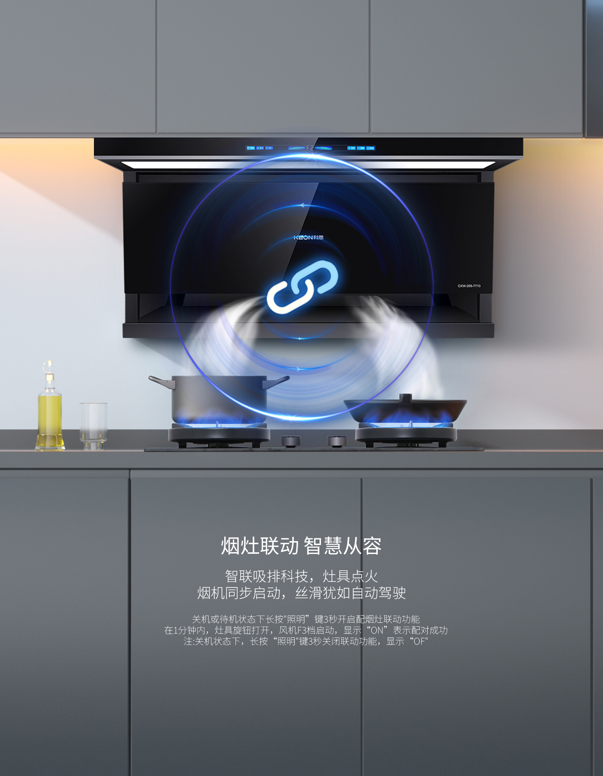 操控方面,科恩7710更是盡顯智能便捷。體感智控功能,只需輕輕揮手,便能指揮煙機運轉,讓父母告別繁瑣的按鍵操作,也避免了觸碰煙機沾染油膩的煩惱。