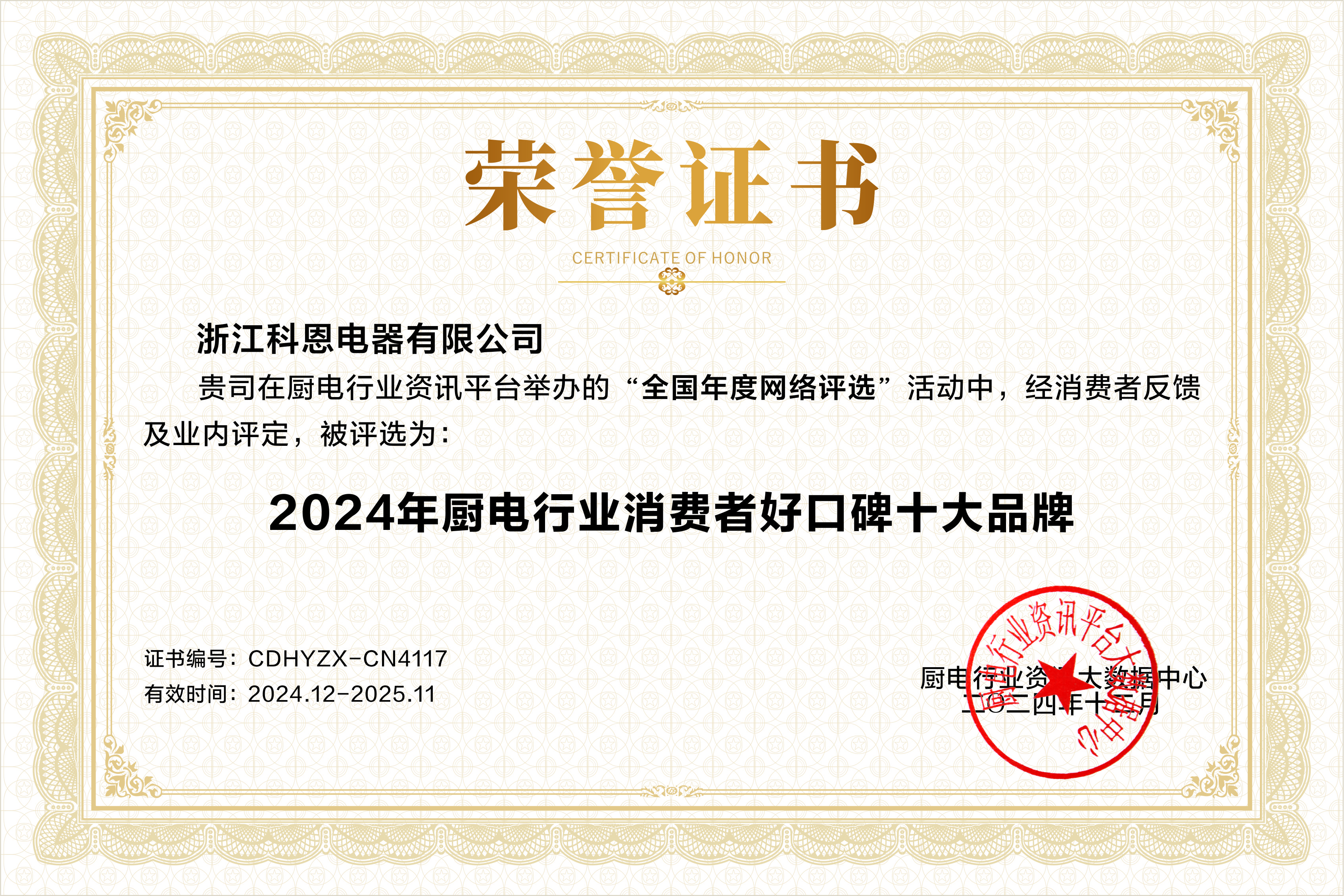 科恩電器長期致力于技術(shù)研發(fā)與創(chuàng)新,其國家級實驗室和龐大的研究團隊成為了企業(yè)不斷前進的核心動力源泉。在研發(fā)投入上不遺余力,使得科恩電器能夠精準洞察市場需求,推出一系列深受消費者喜愛的高品質(zhì)廚電產(chǎn)品,進而在用戶群體中積累了深厚的認可和良好的口碑。此次榮獲廚電行業(yè)消費者好口碑十大品牌稱號,正是廣大消費者對其產(chǎn)品質(zhì)量和服務(wù)的高度肯定。