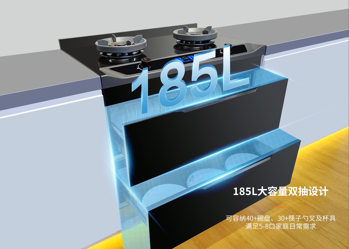 全域消殺,健康護(hù)航。避免餐具二次污染,呵護(hù)全家人健康安全。科恩集成烹飪中心,185L大容量消毒艙體,紫外線+臭氧+紅外三重消殺。奶瓶餐具統(tǒng)統(tǒng)立體滅菌,二星級認(rèn)證看得見的安全!