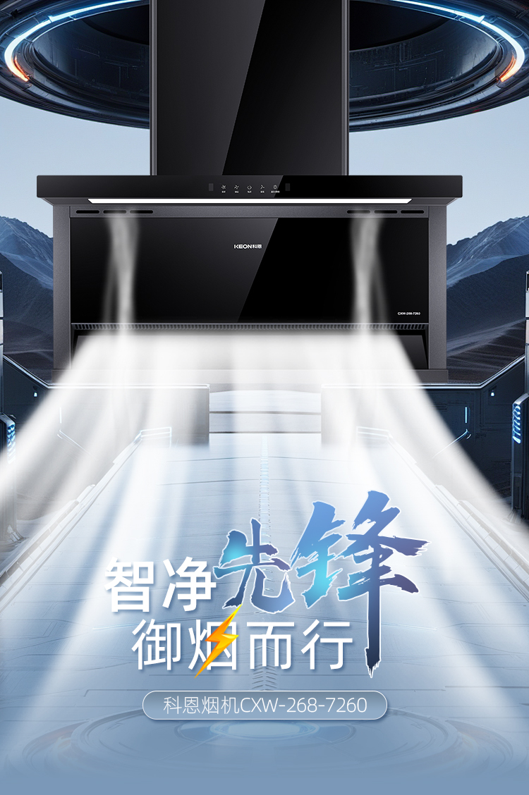 科恩煙機7260,以強大的性能和貼心的設計,打造無煙、舒適的廚房環境,選擇7260開啟您的廚房煥新之旅,讓烹飪成為一種享受!