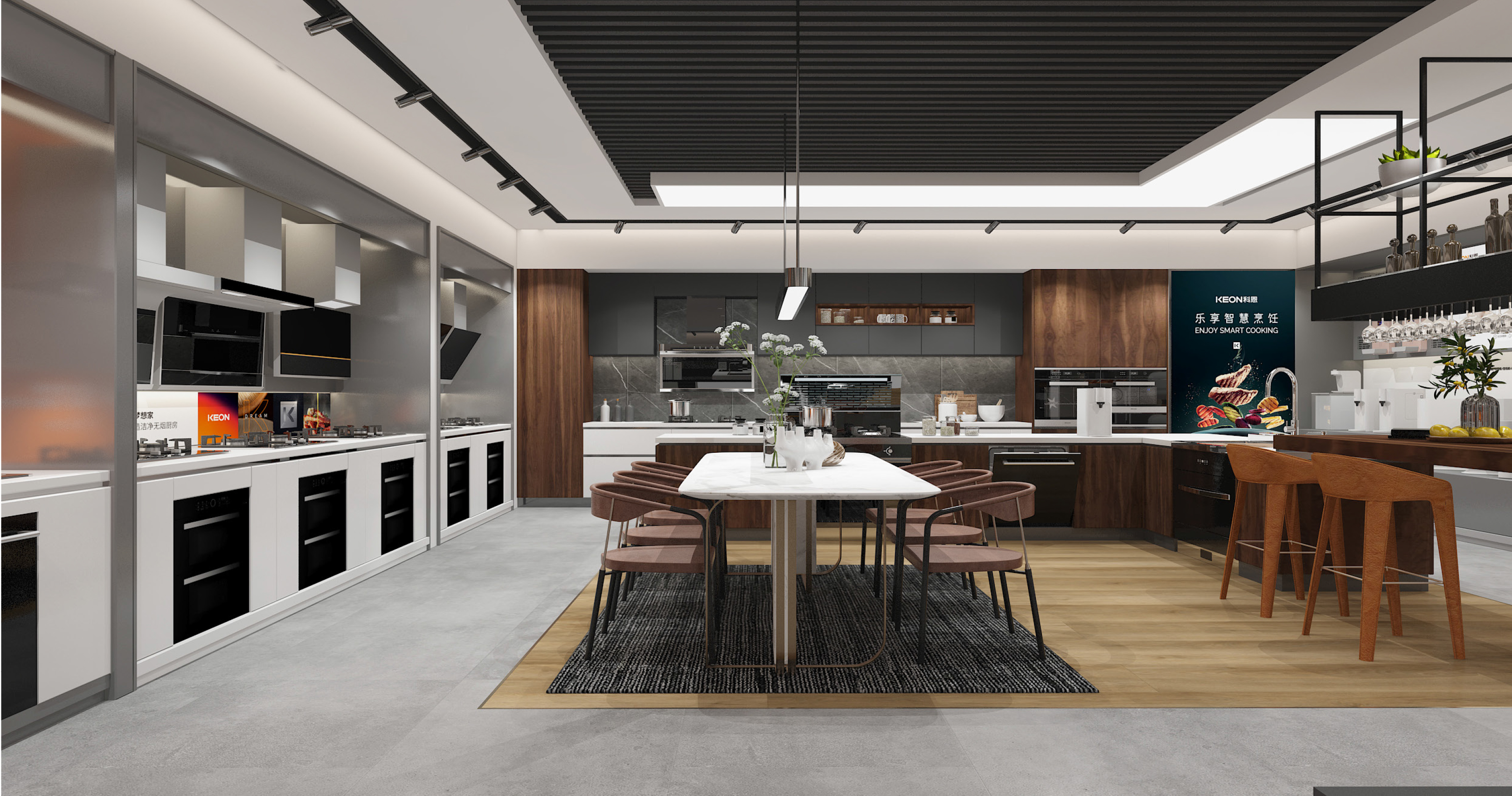 科恩始終以創(chuàng)新驅(qū)動產(chǎn)品迭代,構(gòu)建覆蓋全廚房的產(chǎn)品體系。集成灶、油煙機、燃氣灶、消毒柜、凈水器、集成烹飪中心等全品類廚電,搭載自主研發(fā)的專利技術(shù),兼具節(jié)能、環(huán)保、智能等優(yōu)勢,貼合現(xiàn)代家庭的烹飪需求。同時,科恩突破傳統(tǒng)門店模式,通過模塊化設(shè)計將產(chǎn)品與開放式廚房場景融合,打造集展示、體驗、社交于一體的新型終端。消費者可沉浸式感受產(chǎn)品性能,門店則變身“廚房生活體驗館”,有效提升成交率與用戶粘性。