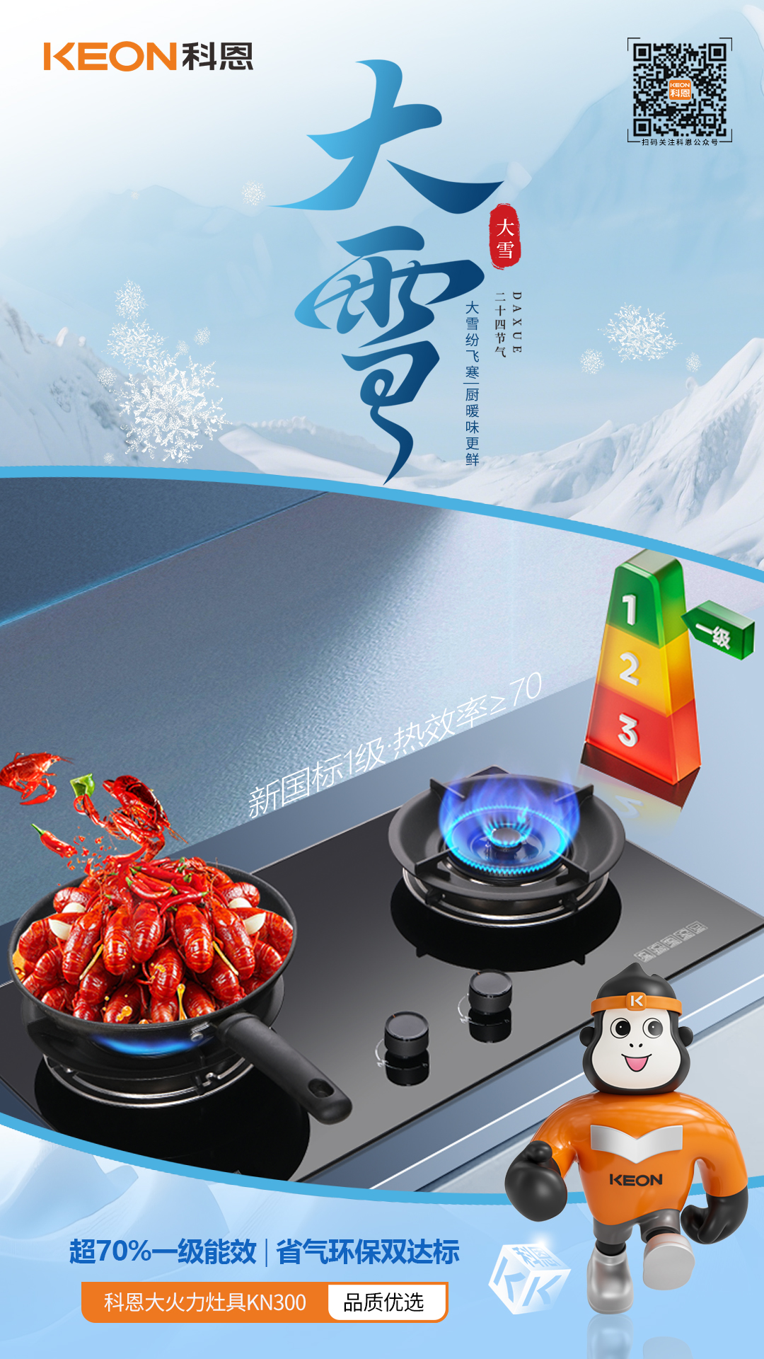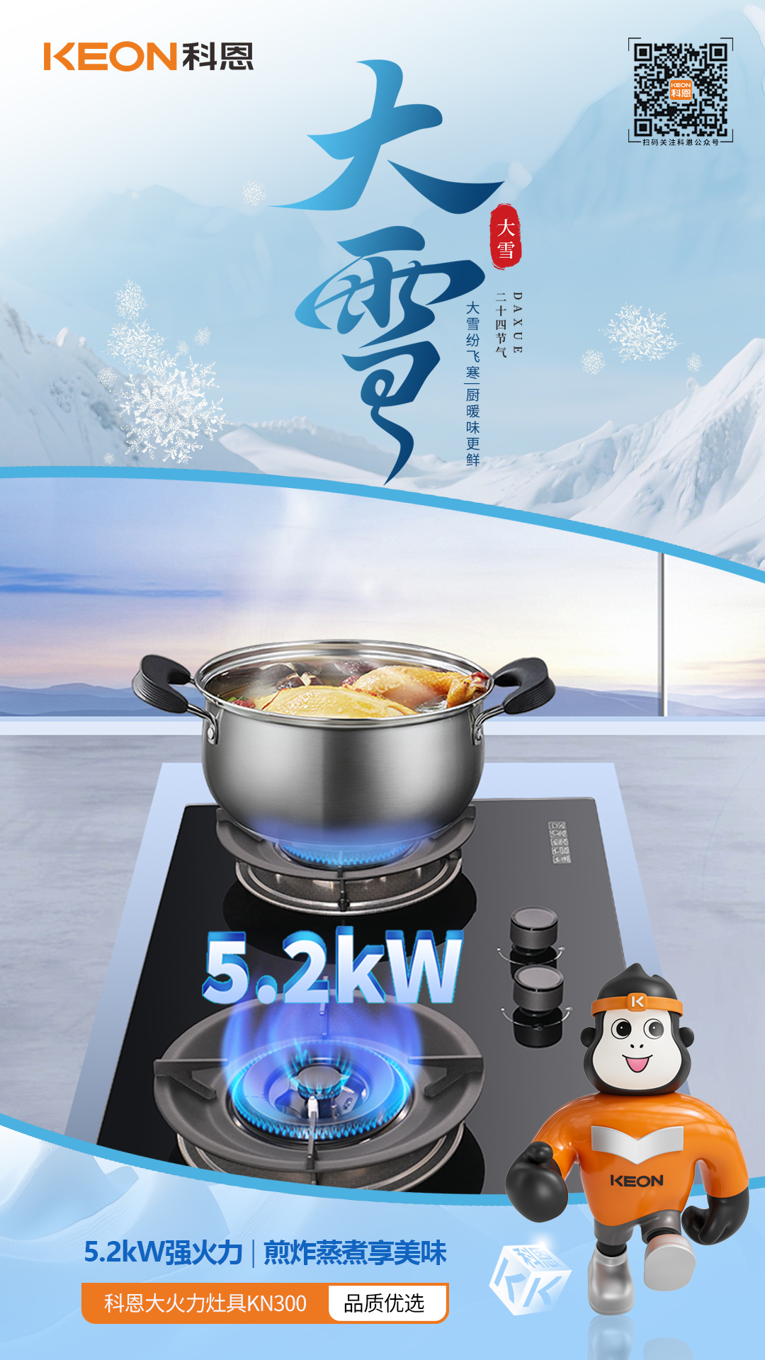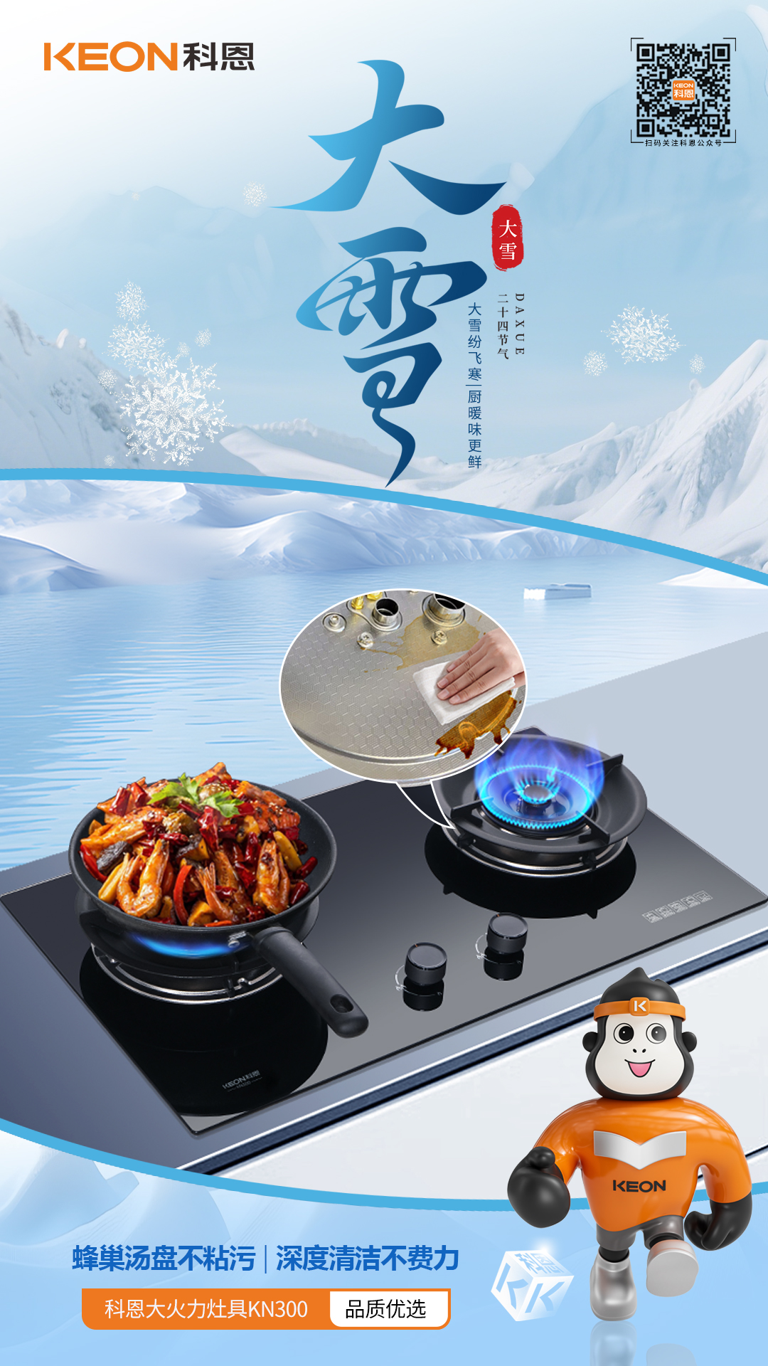 大雪紛飛,寒意浸骨廚房煙火暖,家味最心安老舊灶具添煩憂,烹飪興致打折扣科恩KN300灶具重磅登場以“小灶大能”“換裝無憂”重啟大雪季的烹飪歡暢