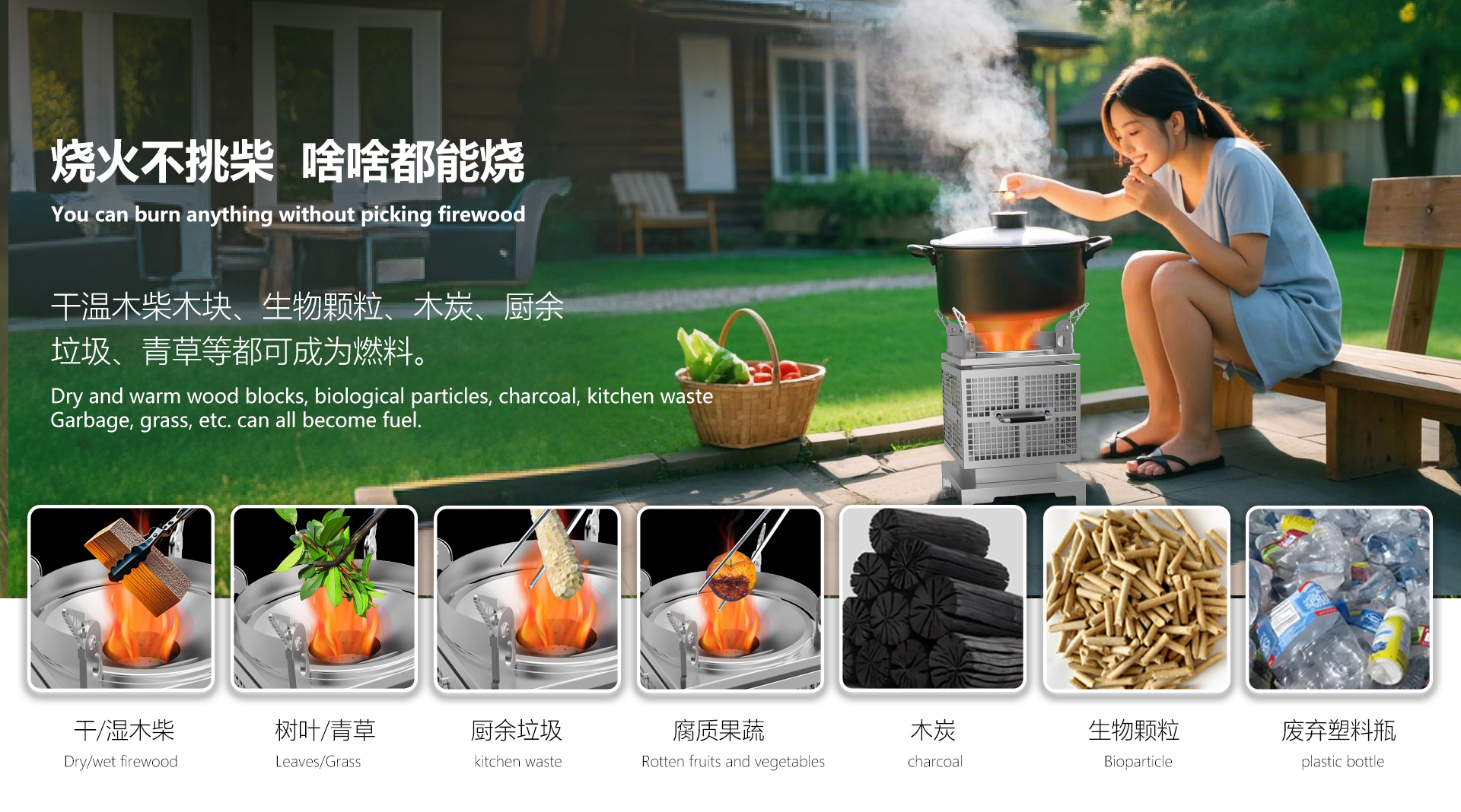 萬(wàn)物皆燃,不挑燃料。干濕木塊,枯枝敗葉,煤炭青草,隨手可得的可燃物,都是能量源泉無(wú)需特意采購(gòu),現(xiàn)撿樹(shù)枝即能用。告別燃料焦慮,戶外烹飪更隨心,節(jié)能省柴,環(huán)保出行無(wú)負(fù)擔(dān)。點(diǎn)火速燃,猛火無(wú)煙。紙巾細(xì)枝,輕松引燃不費(fèi)力,風(fēng)機(jī)助力,生火速度超預(yù)期,3D繞流爐膛,科學(xué)供氧促燃燒,初次燃燒到高效燃燒真正無(wú)煙塵,爆炒不嗆鼻,圍爐無(wú)煙擾。
