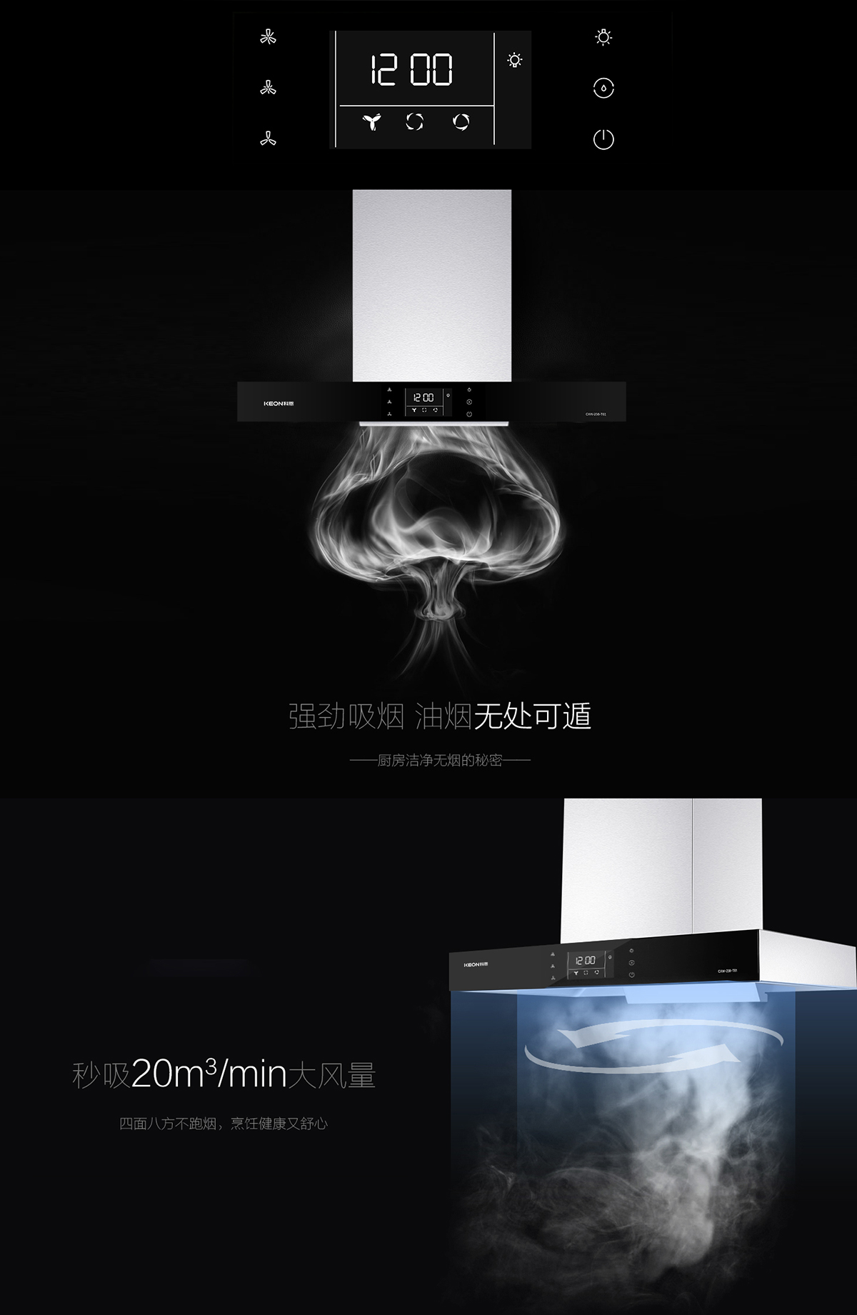 立體環(huán)吸360°,四面八方不跑煙。