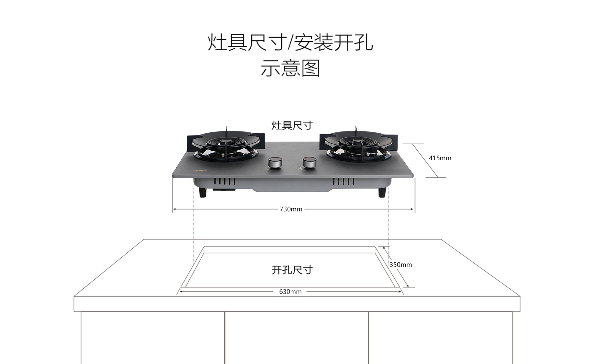外形尺寸:730x415x130mm開(kāi)孔尺寸:630x350xR40mm