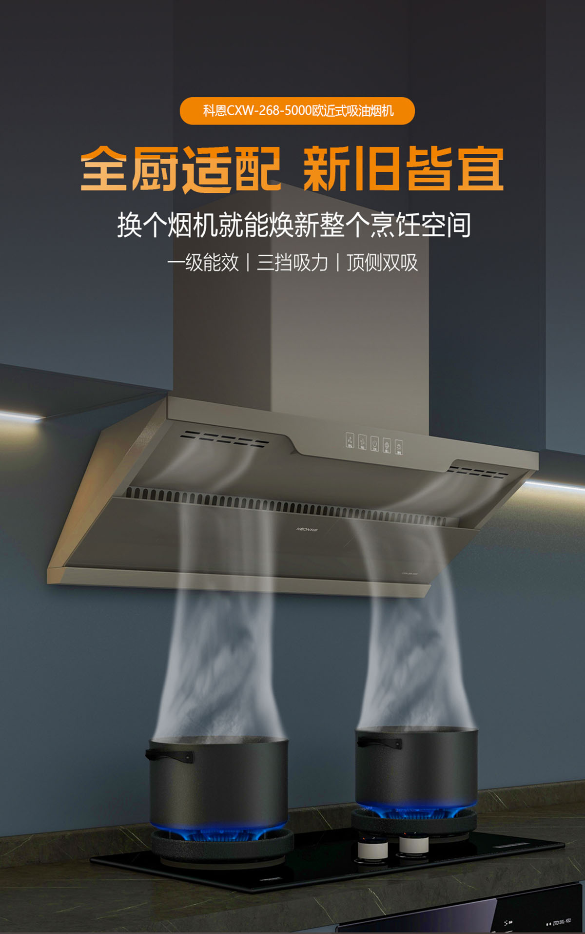 歐近式煙機,平行嵌入,輕松嵌裝,櫥柜美觀不突兀