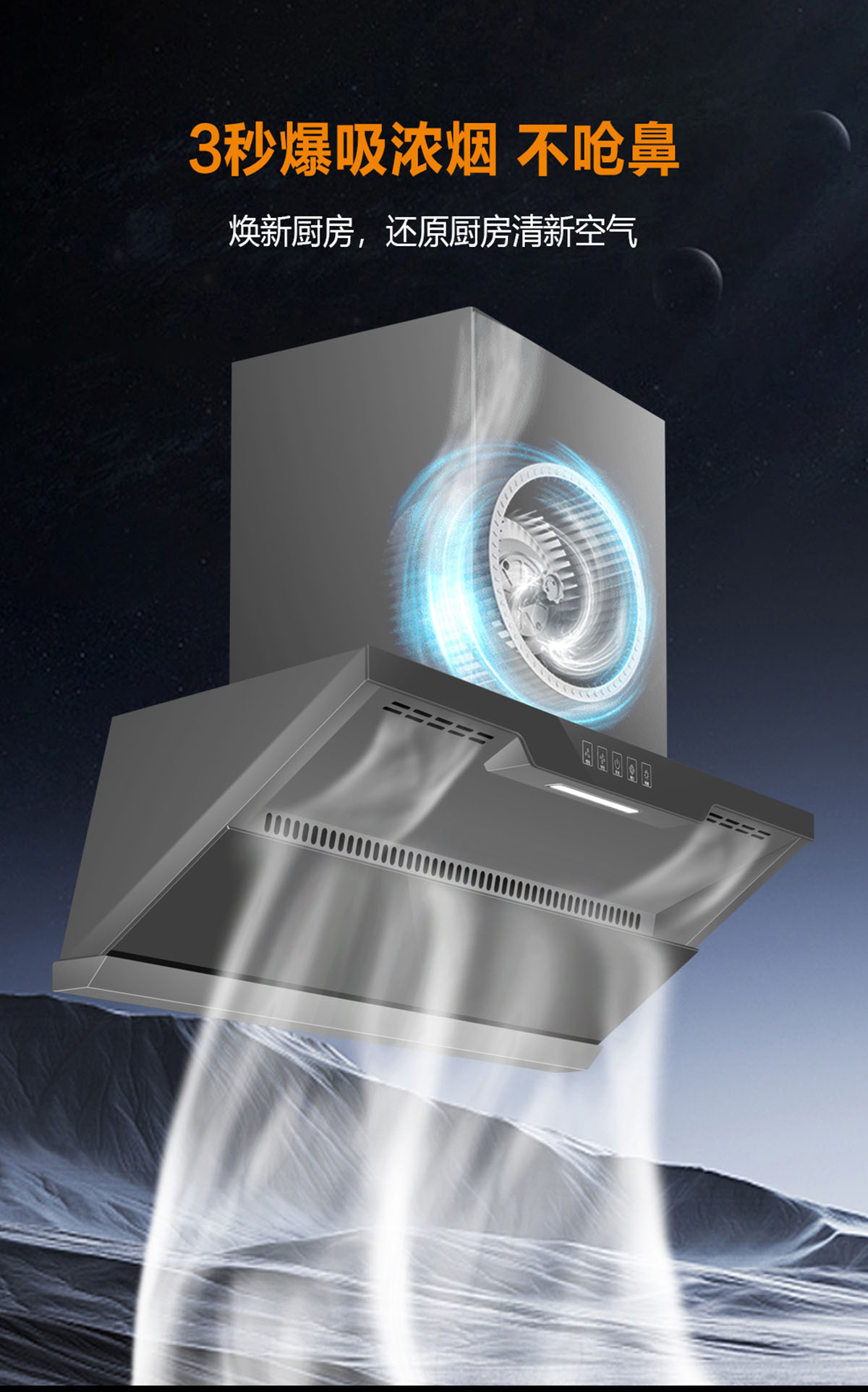 黃金控煙勁吸設計,攏煙面積增加50%,油煙0逃逸