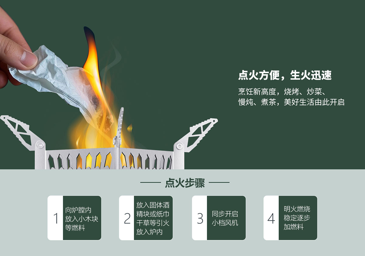 科學結構設計,點火方便,生火迅速